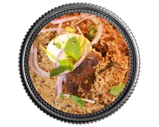 Classic Ghee Roast Biryani comes with goat meat chunks